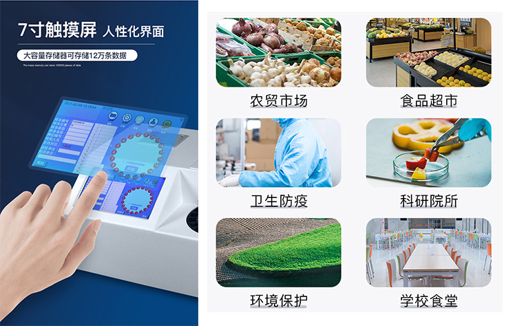 廣泛應(yīng)用于主要用于蔬菜、水果、茶葉、糧食、農(nóng)副產(chǎn)品等食品中有機(jī)磷和氨基甲酸酯類農(nóng)藥殘留的快速檢測;此外還可用于果蔬茶生產(chǎn)基地和農(nóng)貿(mào)批發(fā)銷售市場現(xiàn)場檢測,餐館、學(xué)校、食堂、家庭果蔬加工前的安全速測等,為廣大人民的生活安全提供保障。