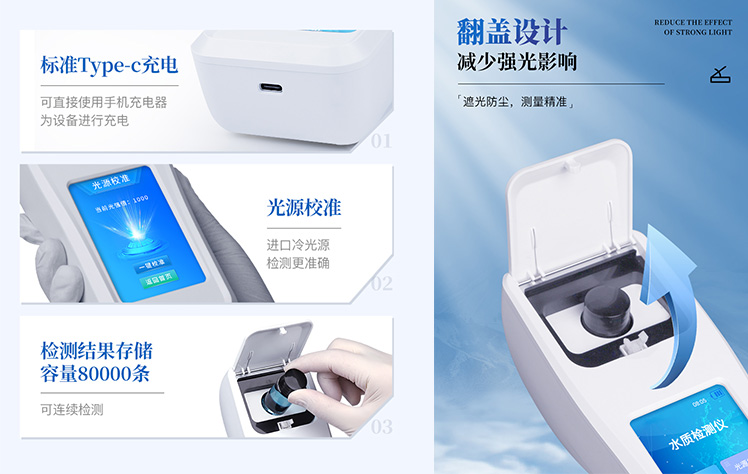 主要檢測水質六價鉻重金屬含量指標,兼具智能數據分析功能,圖表、列表顯示數據,分析一目了然;高清晰度彩色液晶觸摸顯示屏,Android智能操作系統,中文顯示界面,中英文鍵盤,人性化操作,使用更簡單。