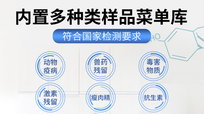該儀器廣泛應用于食藥監局、衛生監督部門、高教院校、科研院所、農業部門、商業系統養殖場、屠宰場、食品肉產品深加工企業、畜牧獸醫、檢驗檢疫部門、食品生產企業、農副產品批發市場、農業生產基地、超市、餐廳、食堂、等單位部門對食品中的不安全指標進行監測使用。