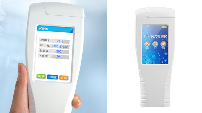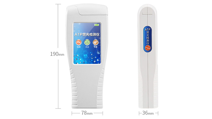 該設備為全新升級產品,大屏幕觸摸顯示屏,代替傳統按鍵。操作采用生物化學反應方法檢測ATP含量,ATP熒光檢測儀基于螢火蟲發光原理,利用“熒光素酶—熒光素體系”快速檢測三磷酸腺苷(ATP)。ATP拭子含有可以裂解細胞膜的試劑,能將細胞內ATP釋放出來,與試劑中含有的特異性酶發生反應,產生光,再用熒光照度計檢測發光值,微生物的數量與發光值成正比,由于所有生物活細胞中含有恒量的ATP,所以ATP含量可以清晰地表明樣品中微生物與其他生物殘余的多少,用于判斷衛生狀況。