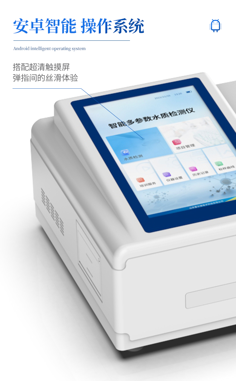主要檢測COD 、氨氮、總磷、總氮等指標(biāo),兼具智能數(shù)據(jù)分析功能,圖表、列表顯示數(shù)據(jù),分析一目了然;高清晰度彩色液晶觸摸顯示屏,Android 智能操作系統(tǒng),中文顯示界面,中英文鍵盤,人性化操作,使用更簡單。