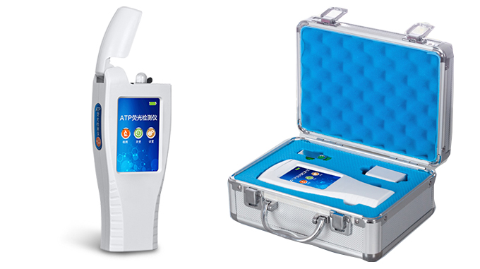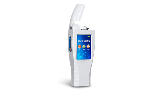 該設備為全新升級產品,大屏幕觸摸顯示屏,代替傳統按鍵。操作采用生物化學反應方法檢測ATP含量,ATP熒光檢測儀基于螢火蟲發光原理,利用“熒光素酶—熒光素體系”快速檢測三磷酸腺苷(ATP)。ATP拭子含有可以裂解細胞膜的試劑,能將細胞內ATP釋放出來,與試劑中含有的特異性酶發生反應,產生光,再用熒光照度計檢測發光值,微生物的數量與發光值成正比,由于所有生物活細胞中含有恒量的ATP,所以ATP含量可以清晰地表明樣品中微生物與其他生物殘余的多少,用于判斷衛生狀況。