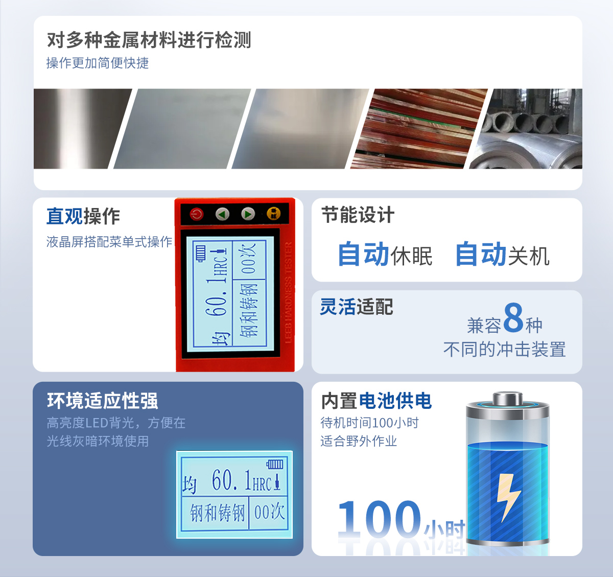 ● 依據(jù)里氏硬度測(cè)量原理,可以對(duì)多種金屬材料進(jìn)行檢測(cè),測(cè)值準(zhǔn)確穩(wěn)定;