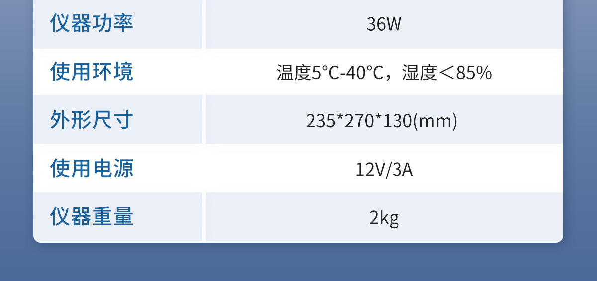 1.儀器主控芯片采用ARM Cortex-A7,RK3288/4核處理器,主頻1.88Ghz,運轉速度更快速,穩定性更強。 2.顯示方式:7英寸液晶觸摸屏顯示,人性化中文操作界面,讀數直觀、簡單。 3.儀器采用全密封滴定池瓶,避免試劑與人接觸,杜絕環境濕度對檢測的影響;檢測過程中儀器自動控制,攪拌、測定60秒左右完成,可直接顯示測定結果,無需人員頻繁操作。 4.儀器內置操作視頻,可直接觀看學習操作方法。 5.儀器可以測試多種樣品,循環檢測,即放即檢。 6.儀器可對樣品信息自由編輯,包括:樣品名稱、樣品編號、檢測單位、檢測人員、聯系方式、受檢單位等。 7.儀器可對檢測樣品測定信息進行設置,例如:電解電流、電解電壓、微量水分含量、測定時間、百分含量、進樣體積、試樣密度、毛重和皮重等。 8.水分檢測方式可根據實際需求選擇體積法或重量法。 9.內置熱敏打印機,可直接打印檢測結果,并可根據需求靈活設置打印內容(二維碼,樣品編號、檢測單位、檢測人員、聯系電話、受檢單位、檢測日期等)。 10.樣品檢測結果可通過二維碼掃碼查看。 11.檢測數據可通過歷史記錄進行檢索,通過設置檢測日期、樣品編號、檢測單位、檢測人員、樣品名稱、受檢單位等信息查找對應數據。 12.儀器配備標準USB接口,免驅動安裝。檢測結果存儲容量20萬條以上,可生成Excel表格進行拷貝。 13.儀器配備WiFi通信模塊,可上傳數據至云平臺,實現電腦端數據查詢、瀏覽、分析、統計等。 14.儀器可定向遠程更新,進行升級維護,無需返廠更新,節省時間及人力成本,避免了物流運輸導致設備損壞的潛在風險。