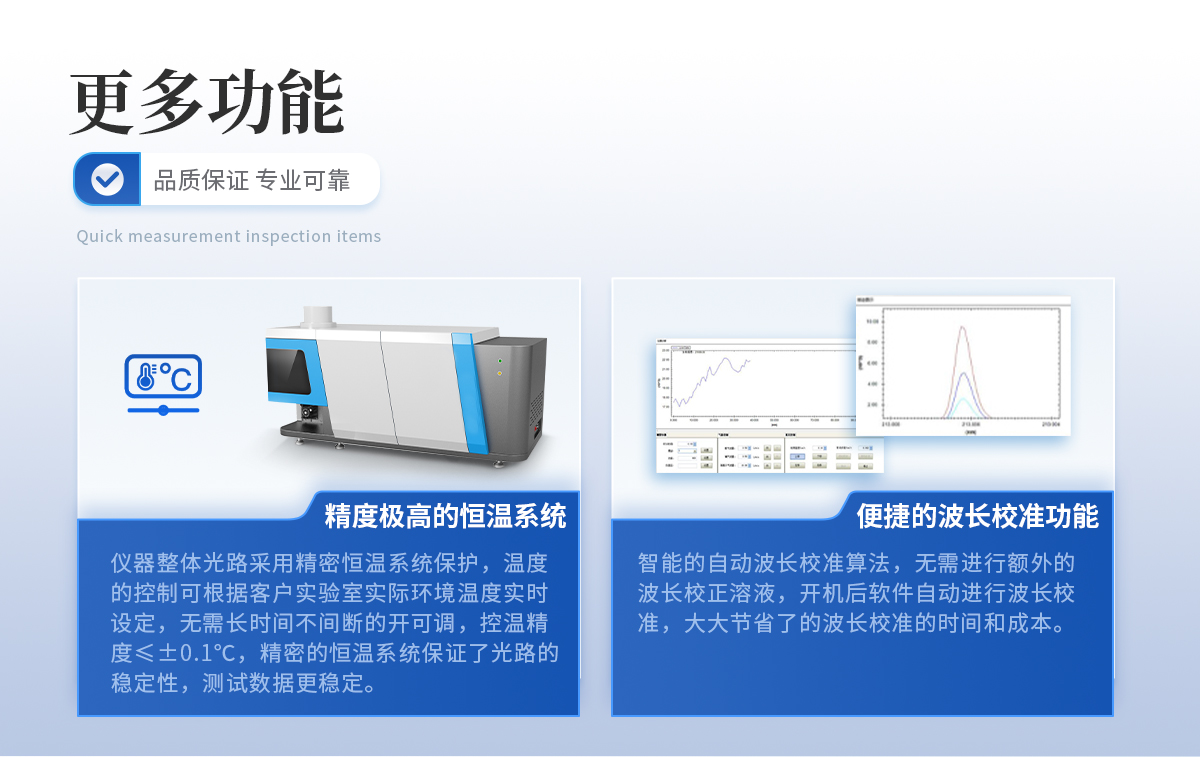 儀器配置了超高分辨率的 4320 刻線的進口光柵,配合**的光路調節專利 技術,把普通儀器的分辨率約 0.008nm 降低至 0.005nm 以內,超高的分辨率保證 了測試元素之間沒有相互干擾。 8、精度**的恒溫系統: