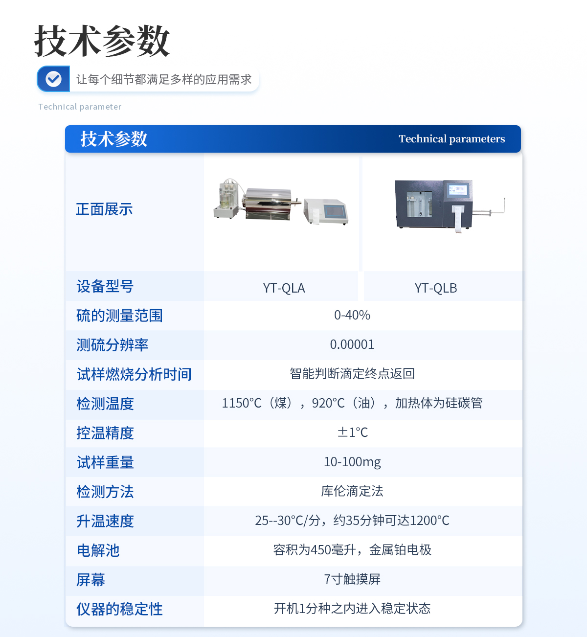 | 1.硫的測量范圍:0—40%. | 2.單個試樣燃燒分析時間:約5--7分鐘,其中在500℃處停留45秒,1050℃處停留4分45秒。 | 3.控溫:精度±5℃。測溫:精度0.5級;加熱體為硅碳管,高溫區長度≥90毫米,溫度為1050℃±5℃(根據需要可調節溫度) | 4.精密度:如下表規定: | St,%<1 1="">4 | 重復性St,ad,% 0.05 0.10 0.20 | 再現型St,d,% 0.10 0.20 0.30 | 5.升溫速度:20--25℃/分,約30分鐘可達1050℃。 | 6.電解池:容積為450毫升,鉑電解電極面積150mm2 。 | 7.供電電源:220(1±10%)V,50Hz. | 8.儀器尺寸(mm) 長×寬×高(770×460×410) |