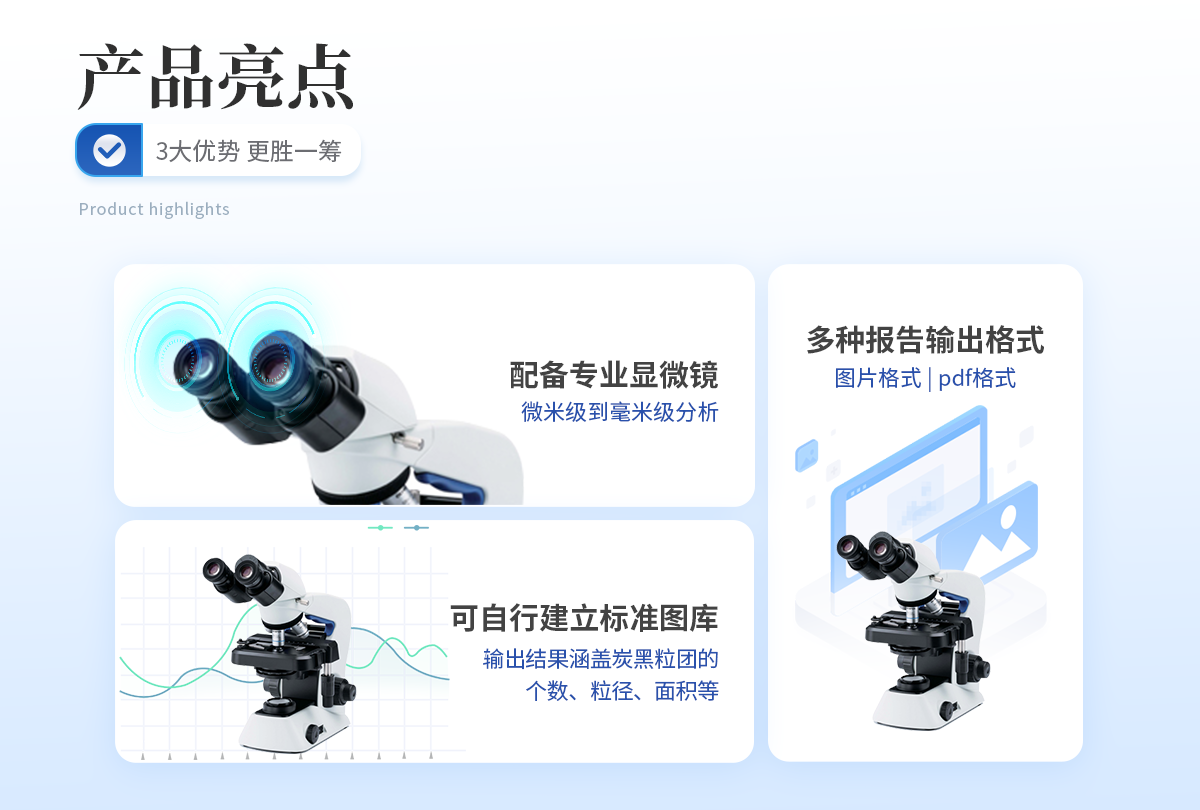 | 1、采用專業(yè)圖像分析法由計算機完成炭黑分散度等級的判定,檢測精度高。 | 2、對目標炭黑粒徑可從微米級到毫米級進行分析 | 3、 配備專業(yè)顯微鏡,配以500萬CMOS圖像傳輸器 | 4、可單張保存圖像,圖像大小由640*480,1024*768,1280*1024,2592*1944四種大小可供選擇 | 5、豐富的圖像處理功能,滿足多種圖像處理需要 | 6、軟件具有自動和手動兩種方式進行炭黑圖像分割 | 7、軟件可滿足對局部分析的要求 | 8、配備測微標尺,可進行像素點尺寸校準,并且軟件具有移動標尺功能,可進行任意兩點距離測量 | 9、客戶可以自行建立標準圖庫 | 10、輸出結(jié)果涵蓋炭黑粒團的個數(shù)、粒徑、面積等,并可以數(shù)據(jù)報表和excel的形式進行輸出 | 11、提供圖像灰階分布圖、粒子徑分布圖、粒度分布圖 | 12、報告結(jié)果包括:樣品名、標準名、原始圖像、灰階圖等。報告輸出格式多樣,可以選擇圖片格式或pdf格式進行保存。 | 13、軟件試用各種主流操作系統(tǒng),與win7/win10/winXP等有很好兼容性。 | 14、采用usb2.0數(shù)據(jù)接口,可適配多種采集設備(如:攝像頭或數(shù)碼相機) |